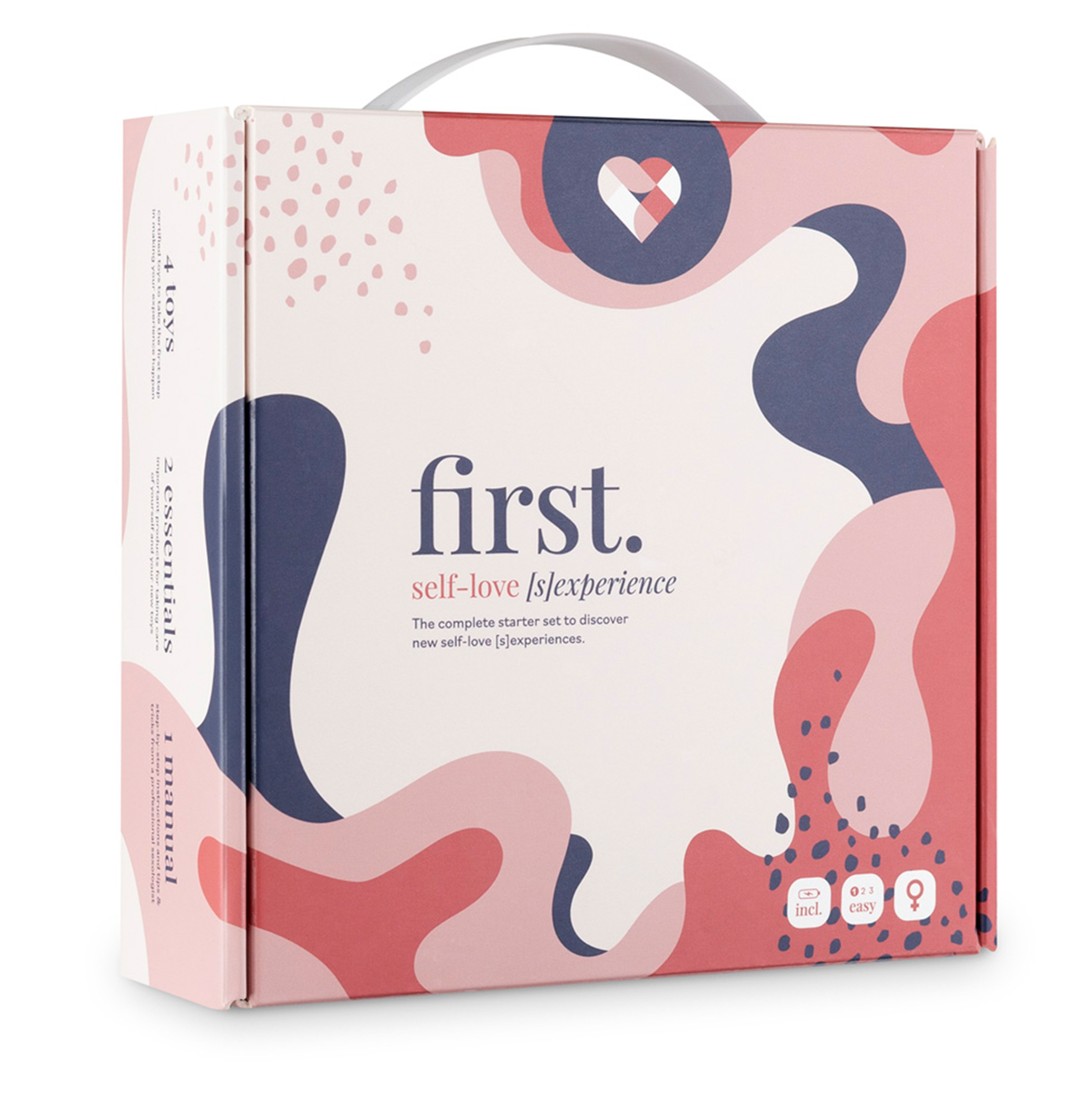 De First. Self-Love [S]Experience Starter Set is de perfecte starter-kit voor vrouwen die nieuwsgierig zijn naar het gebruik van verschillende soorten speelgoed, maar weinig tot geen ervaring hebben. Maar ook voor koppels is de box een leuke toevoeging voor een spannend avondje in de slaapkamer. De verrassende inhoud biedt veel keuzes en volop mogelijkheden om je eigen lichaam nog beter te leren kennen! De box bevat een op afstand bestuurbaar vibratie-ei, een mini vibrator met 4 opzetstukken, een jingle ball, een anaal plug, glijmiddel op waterbasis en een flesje toycleaner. Al het speelgoed is gemaakt van lichaamsveilig materiaal en is gebruiksvriendelijk. De uitgebreide en eerlijk geschreven handleiding (in het Engels) staat boordevol uitleg, do’s en don’ts en geeft je voldoende zelfvertrouwen om aan deze nieuwe reis te beginnen.