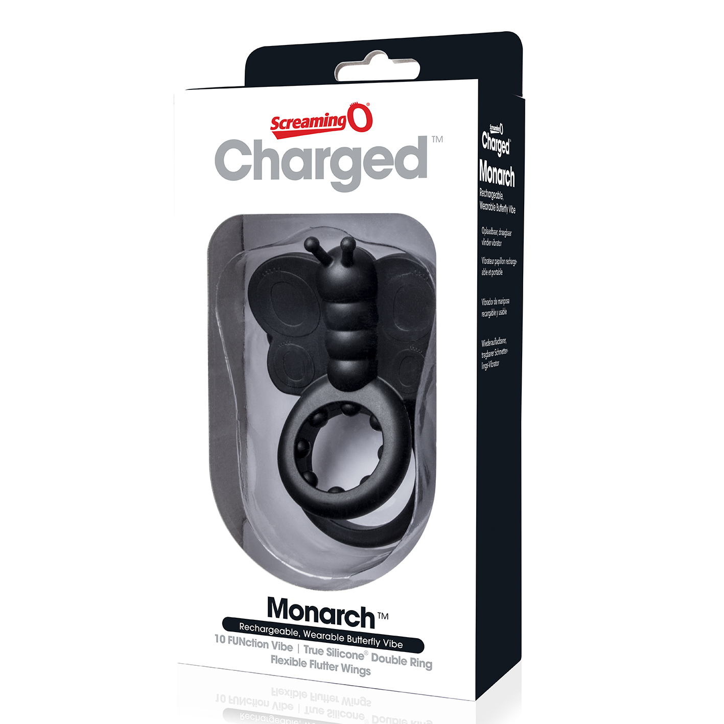 De Screaming O vibrerende Cockring is een oplaadbare draagbare vlinder vibrator in compacte vorm dat surround sound vibraties geeft. Deze cockring heeft diepe, rommelende vibraties met 10 functies en kan meer dan 60 minuten mee op een volle batterij. Deze siliconen penisring is gemaakt met een dubbele ring – de voorste ring voor de penis en de achterste ring voor de penis en testikels – om de gebruiker heerlijke sensaties te geven terwijl de ring goed op z’n plaats blijft zitten.