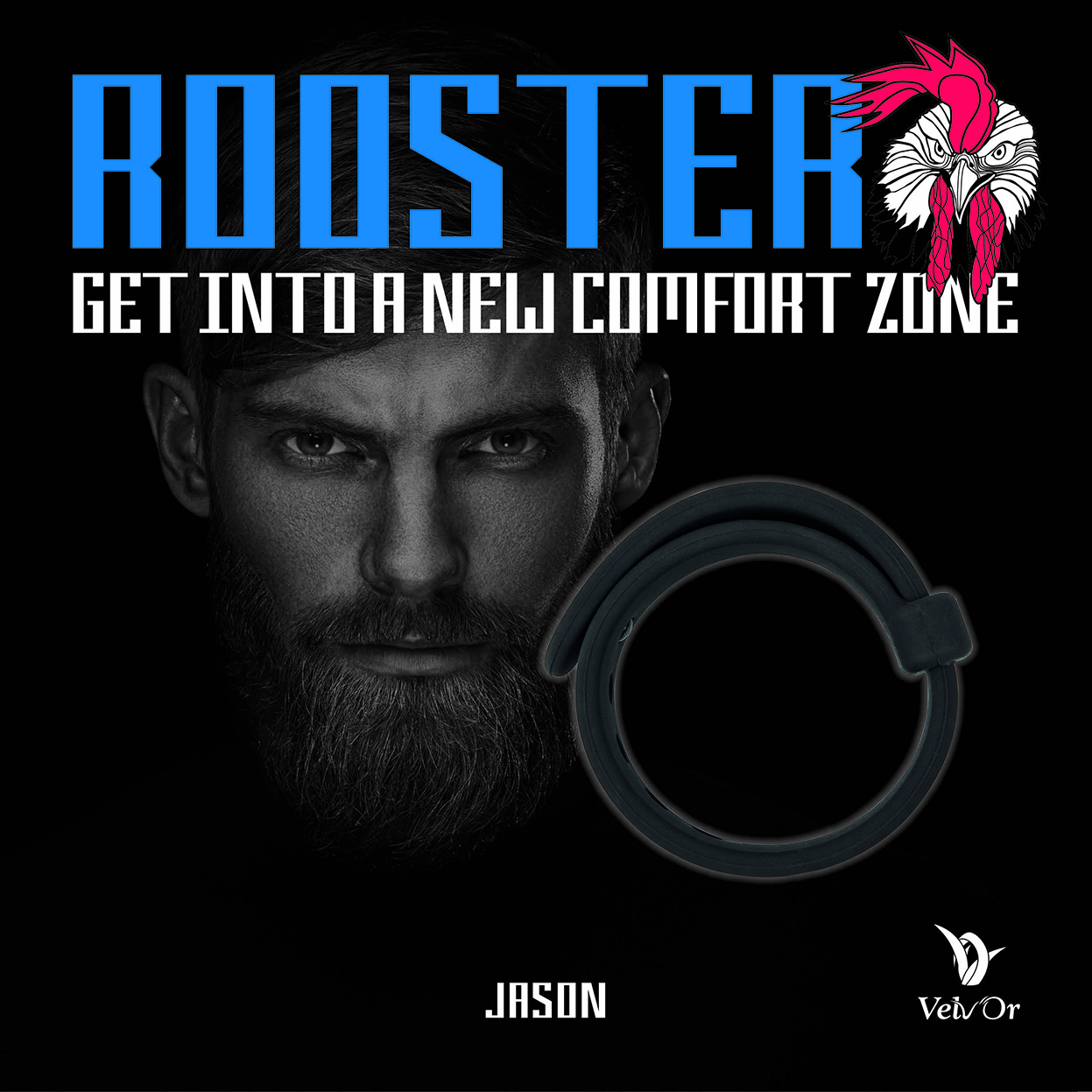 Velv’or – Rooster Jason Verstelbare Cockring Zwart